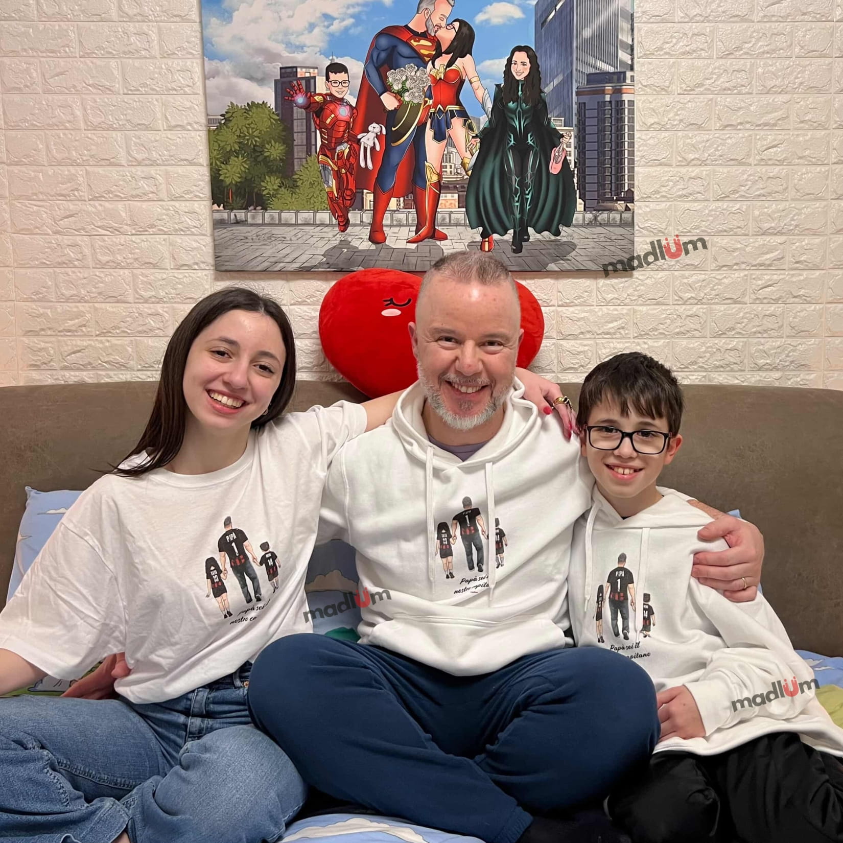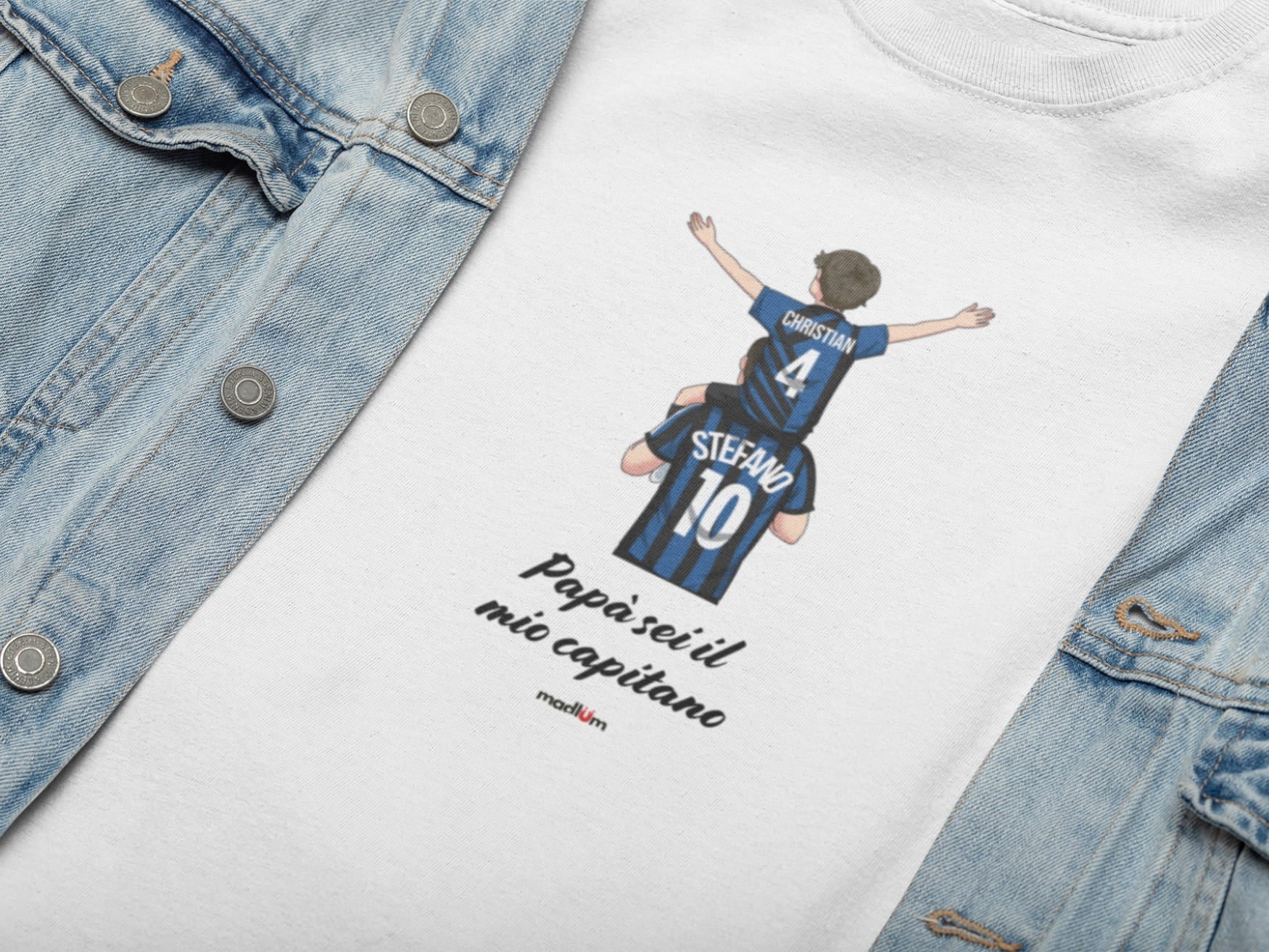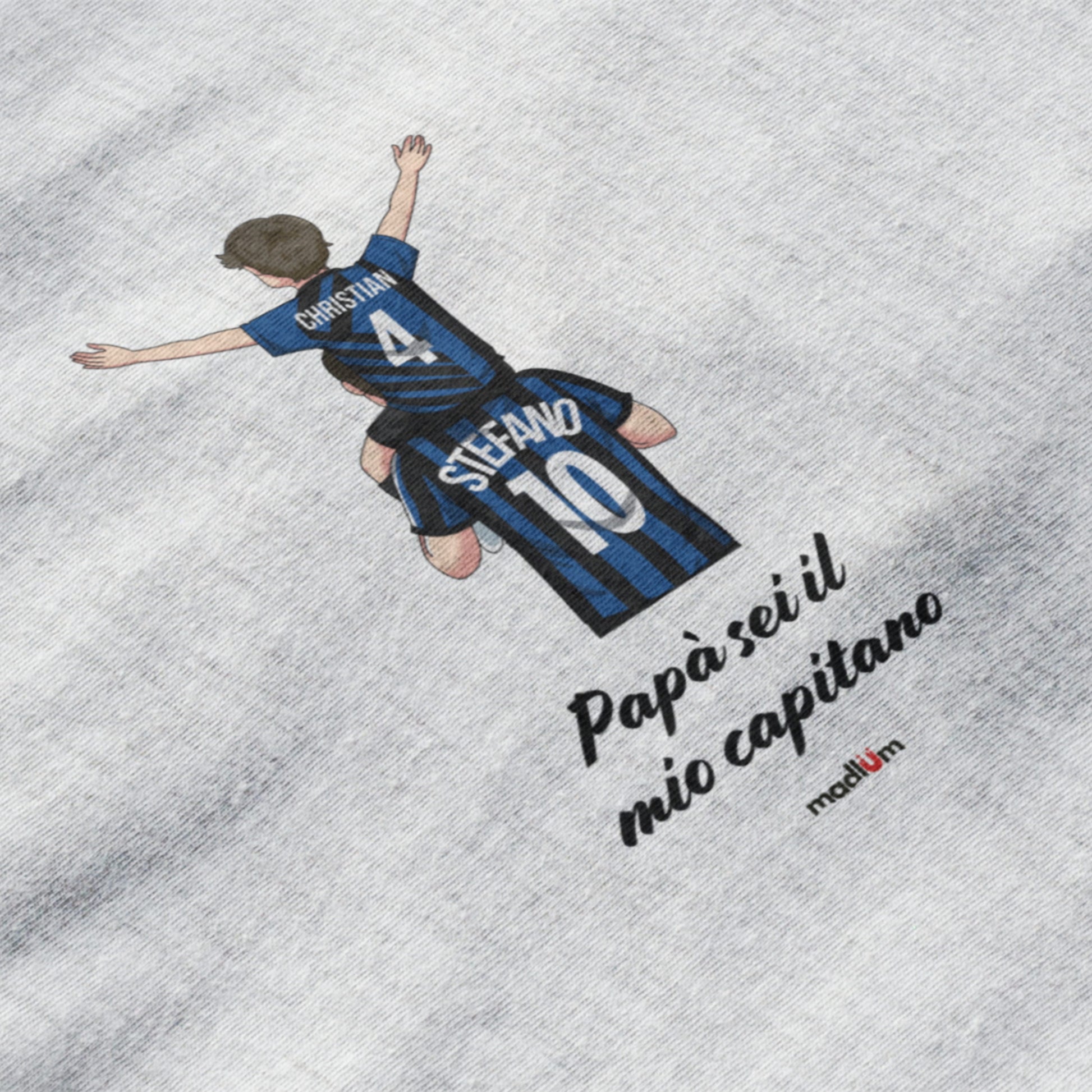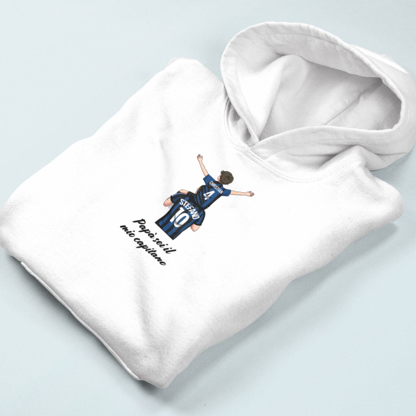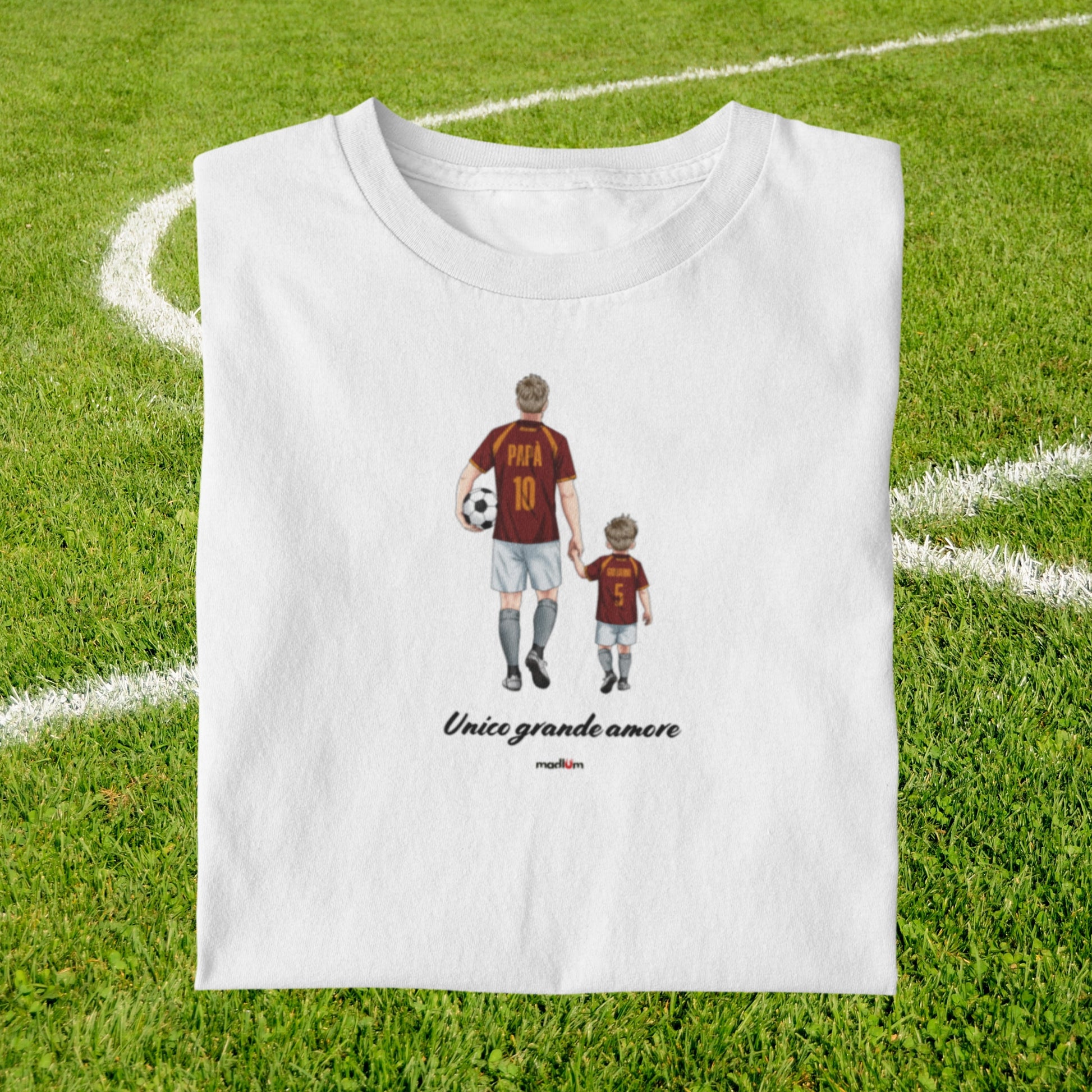 Con questo ritrattino personalizzato a tema calcio trasformi padre e figlio (o anche tutta la famiglia) in un’illustrazione unica, indossando i colori e la maglia della vostra squadra del cuore. Il disegno viene realizzato a mano, partendo dalle vostre foto, e poi stampato con cura su t-shirt o felpa: un regalo speciale per compleanni, Festa del Papà, Natale o per celebrare una stagione indimenticabile.